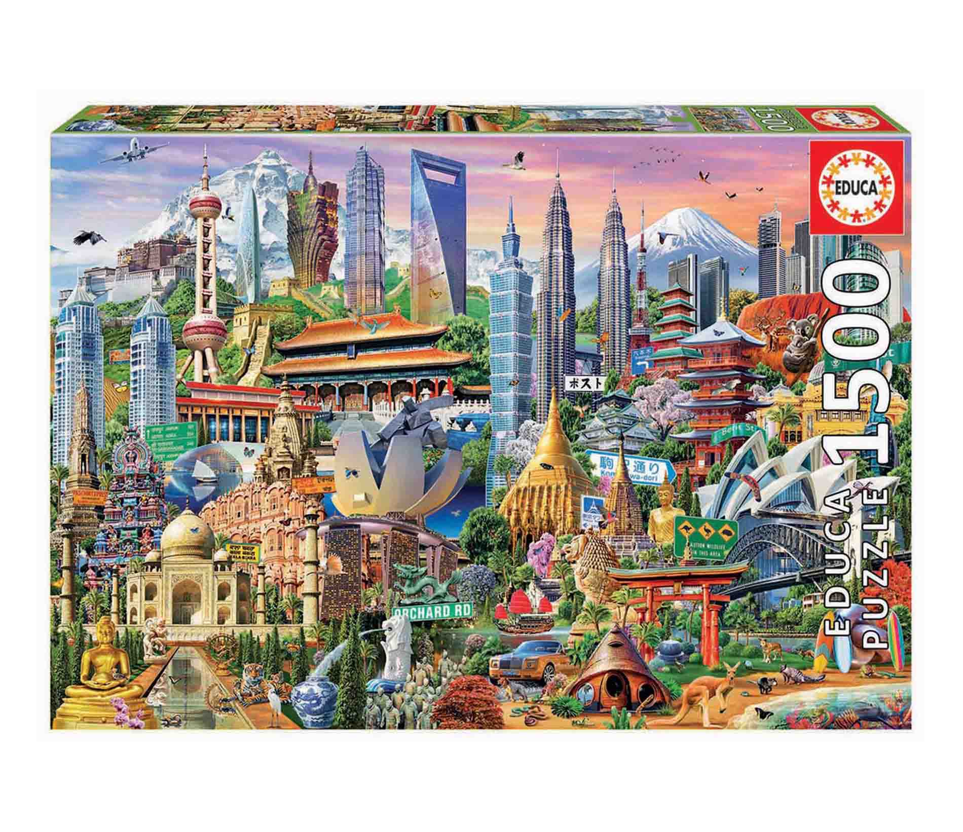 • 1500 Pieces Puzzle • Landmarks In Asia • Approximate Size Of The Assembled Puzzle: 85 X 60 Cm.