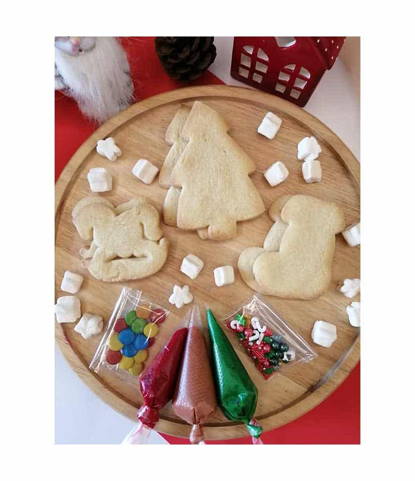 enjoy decorating 6 christmas cookies with 3 bags of icing and 2 bags of christmas sprinkles