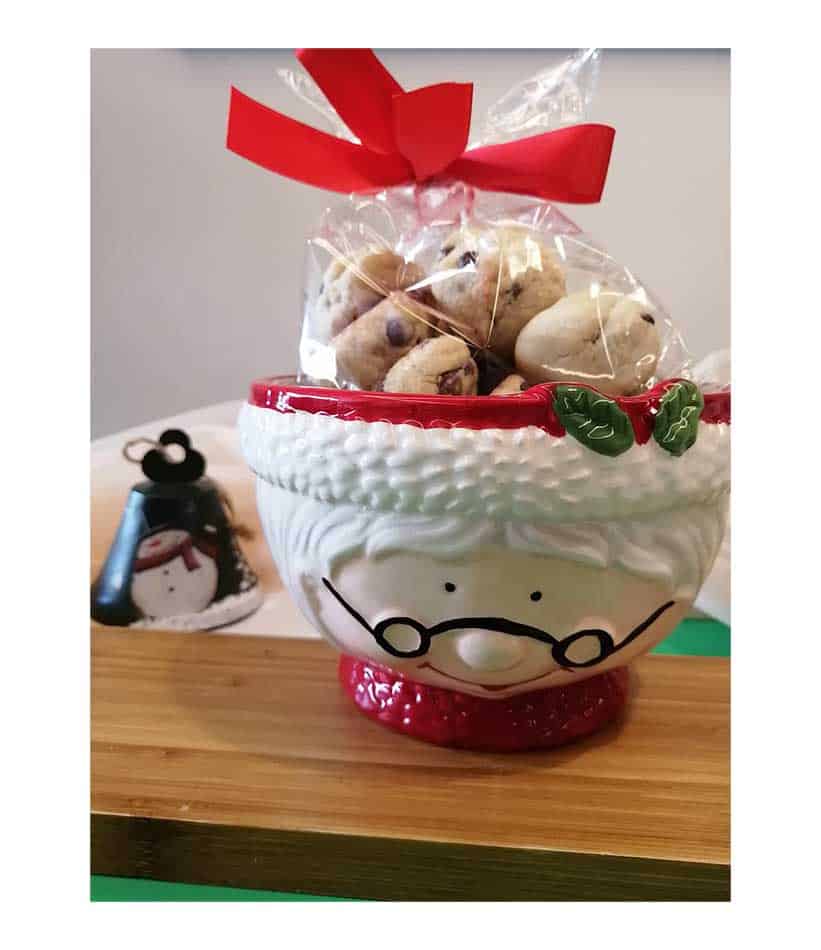 a unique christmas jar filled with 12 pieces of mini chocolate chips cookies