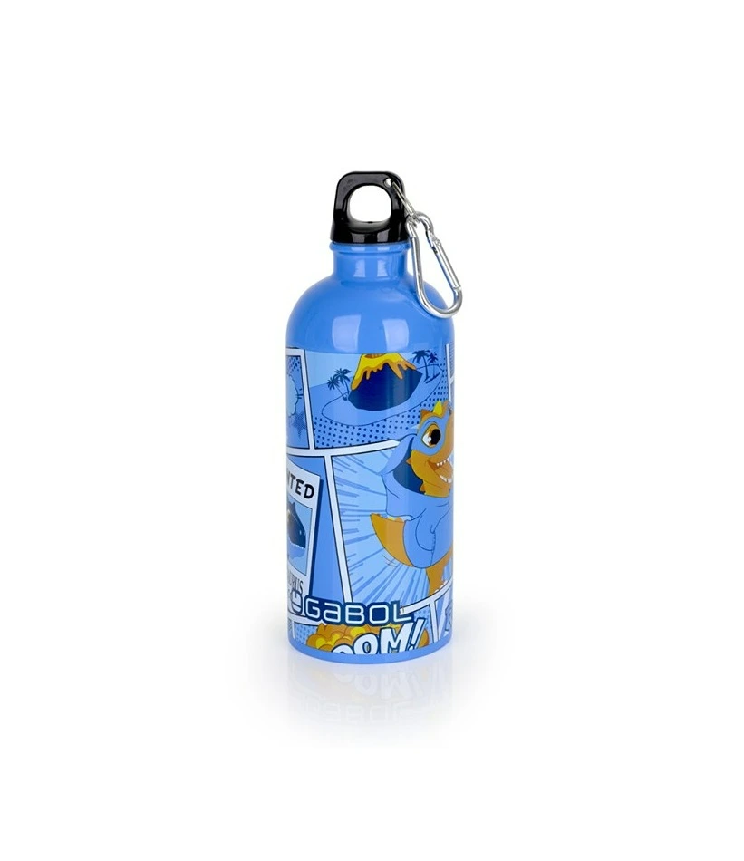Gabol DINO stainless steel bottle. 600ml BPA-free stainless steel bottle. Screw-top closure with carabiner for easy attachment. Made of PVC-free material. Dimensions: 7x21x7cm.