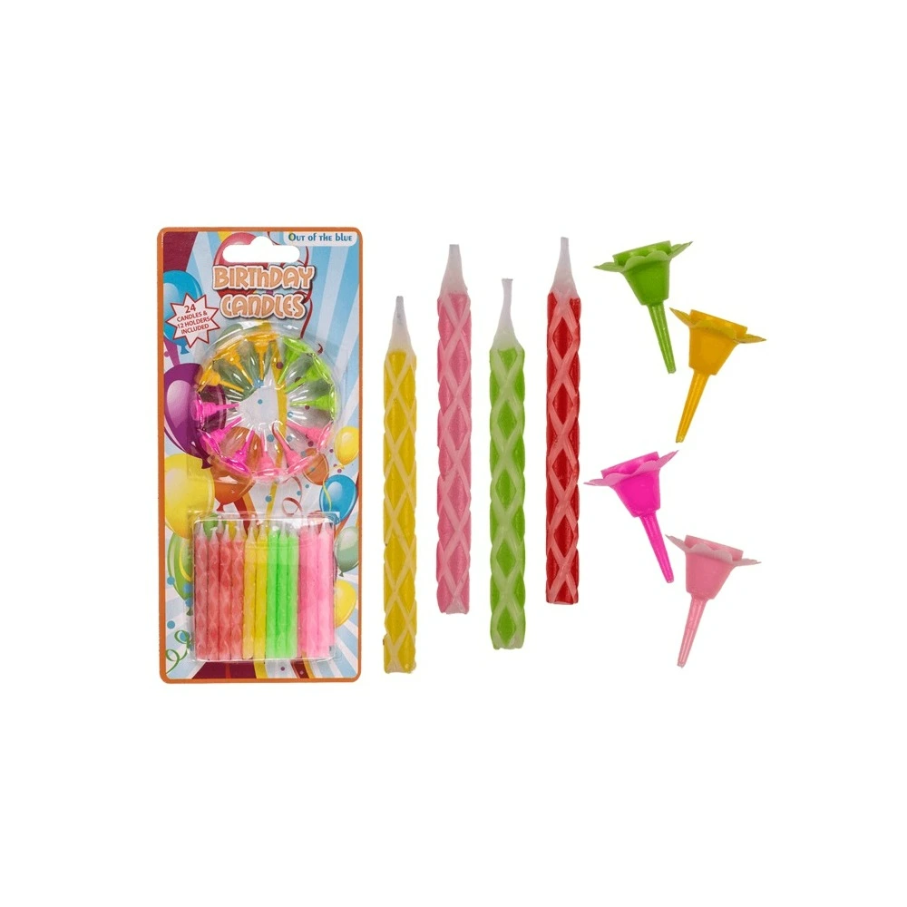 Out Of The Blue 24 Birthday Candles, 0.5 x 5.8 cm With 12 Cake Holder #181016.