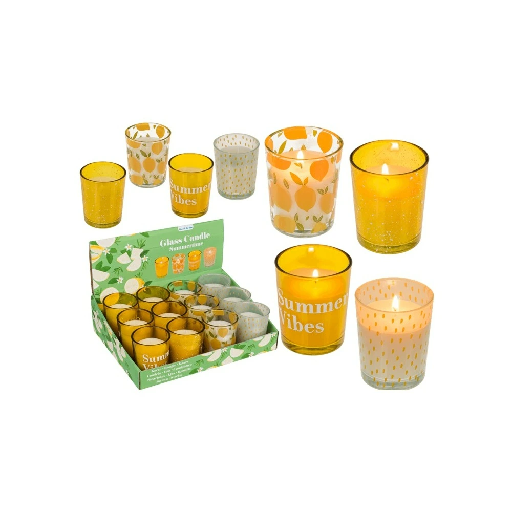 Out Of The Blue Candle in glass 5,5 x 6,5cm “Summertime design” #153323 Assorted.
