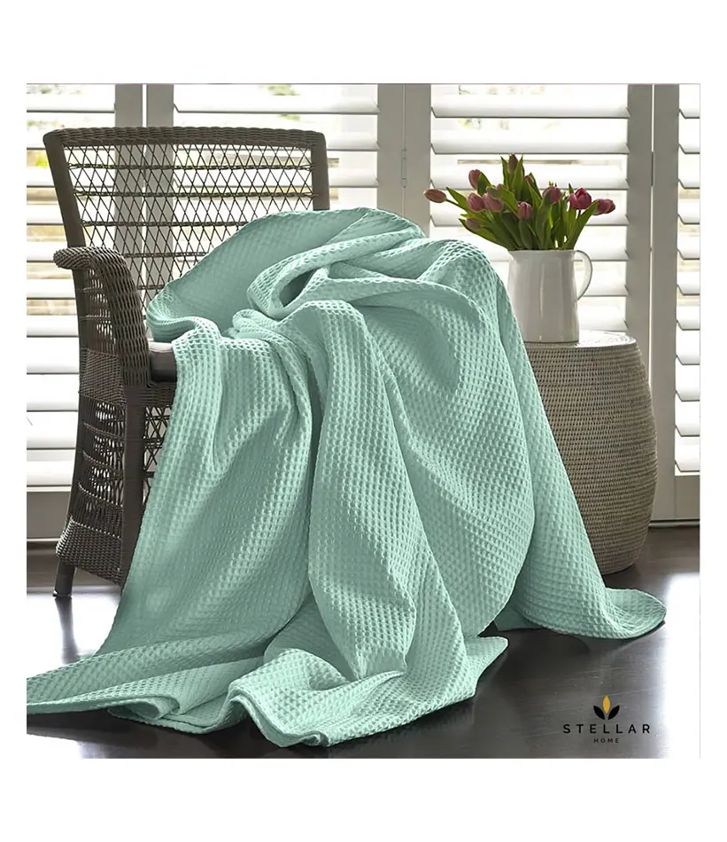 Premium 100% Cotton Single Size Summer Blanket/Pique – Mint Green Classic Waffle (2 pcs)