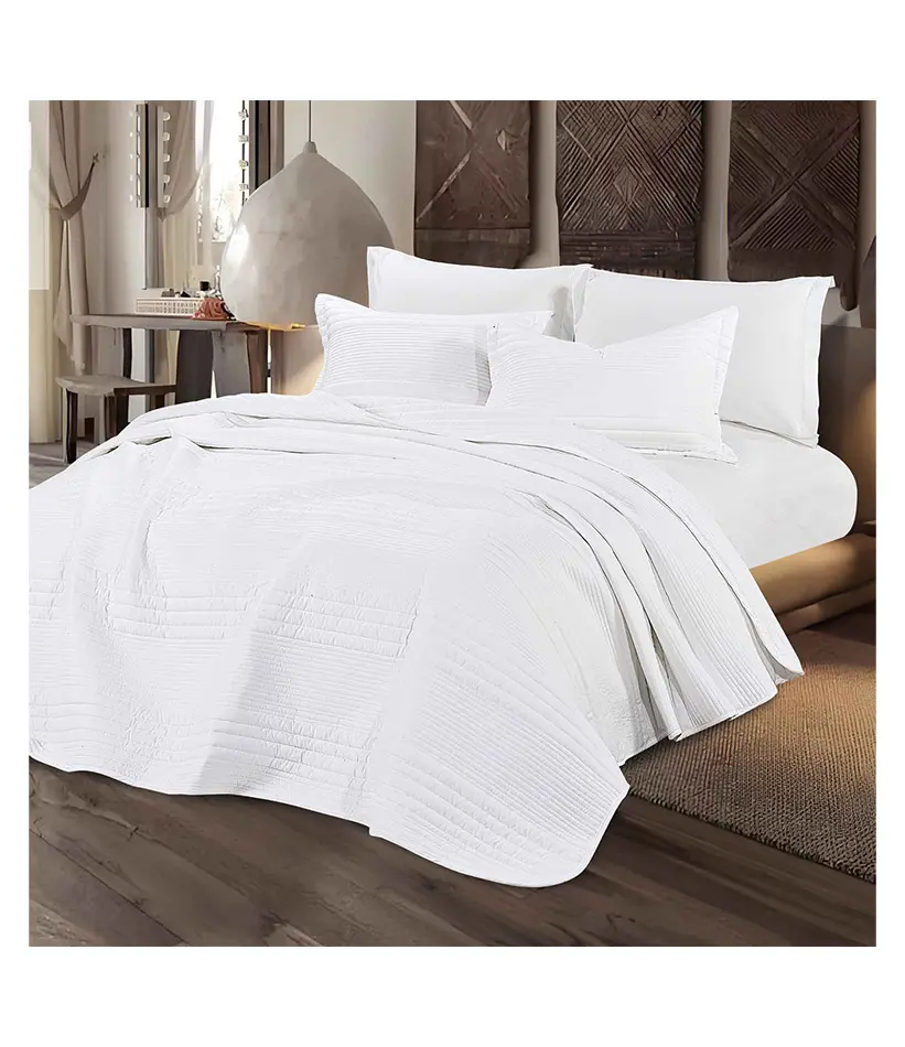 PREMIUM SUMMER SINGLE SIZE 4 PC BEDSPREAD SET – STRAPPED WIDE WHITE