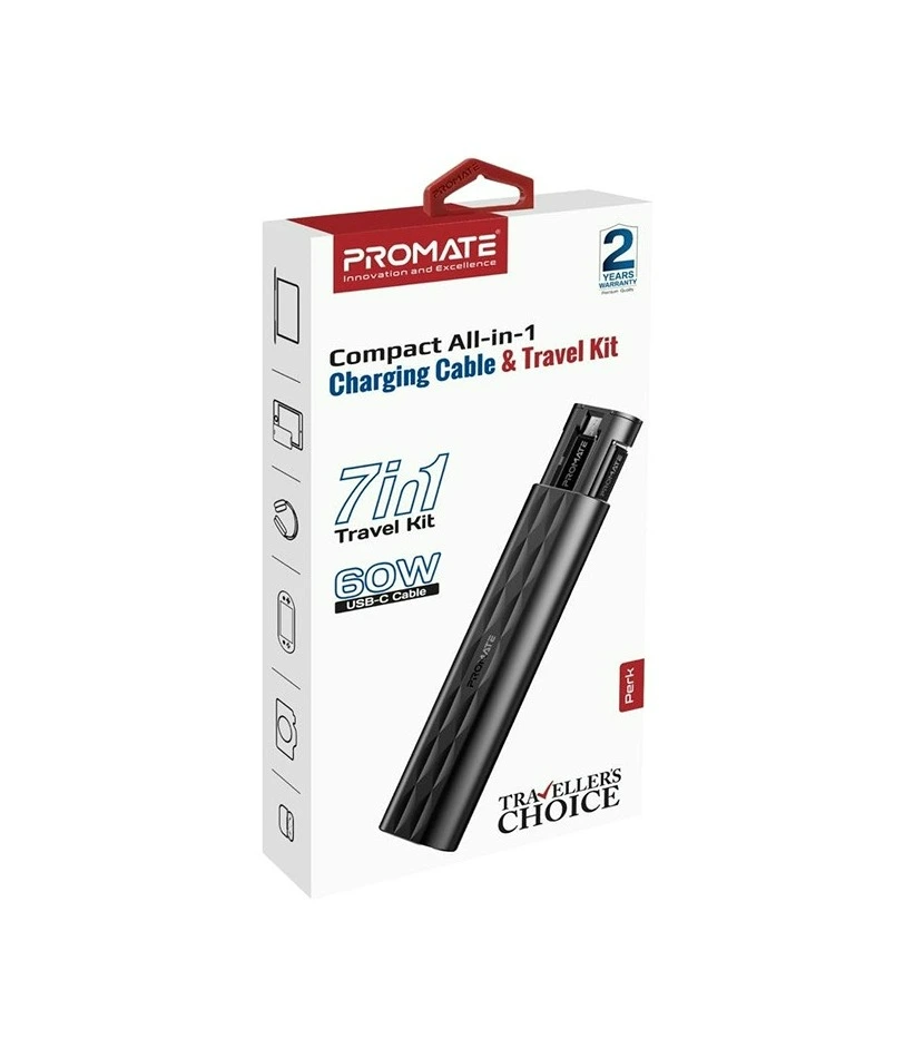 Promate Compact All-In-1 Charging Cable & Travel Kit Black#Perk