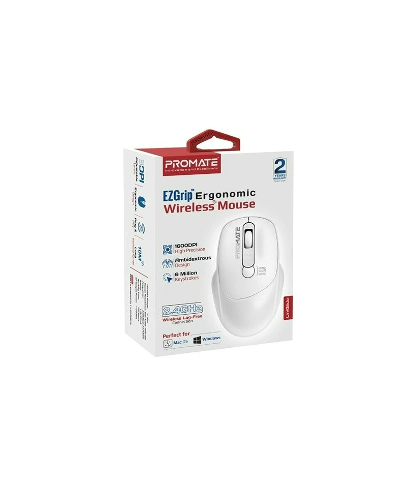 Promate Ergonomic Wireless Mouse Ezgrip #Uniglide White