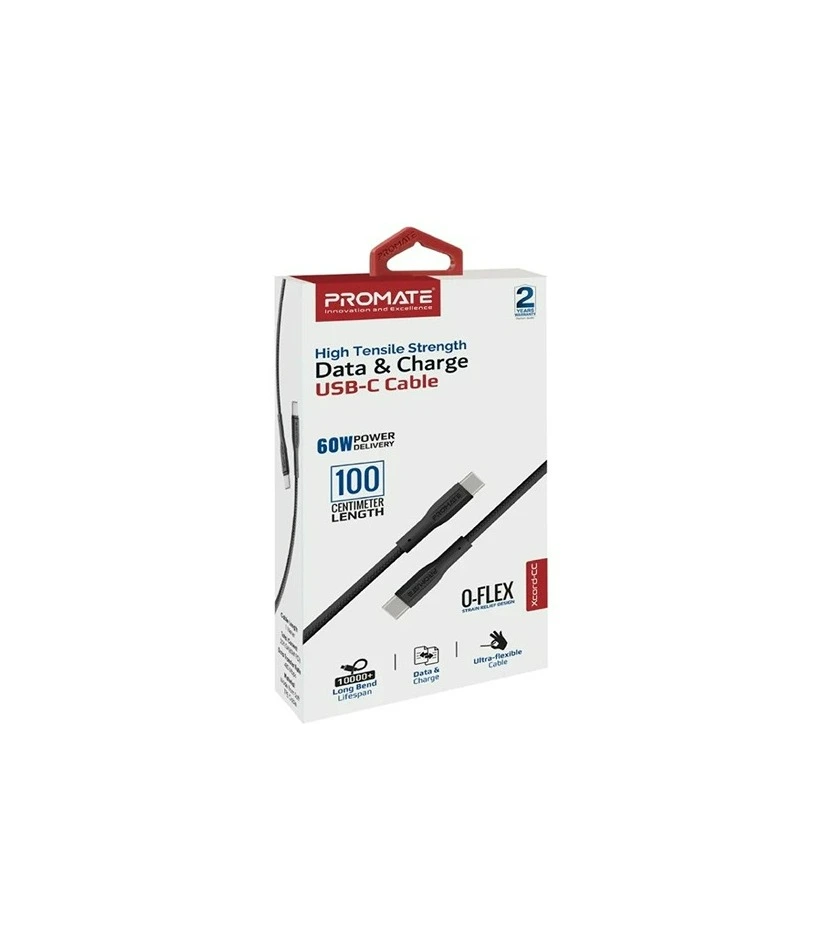 Promate High Tensile Strength Data & Charge Usb-C Cable 60W #Xcord-Cc.Black