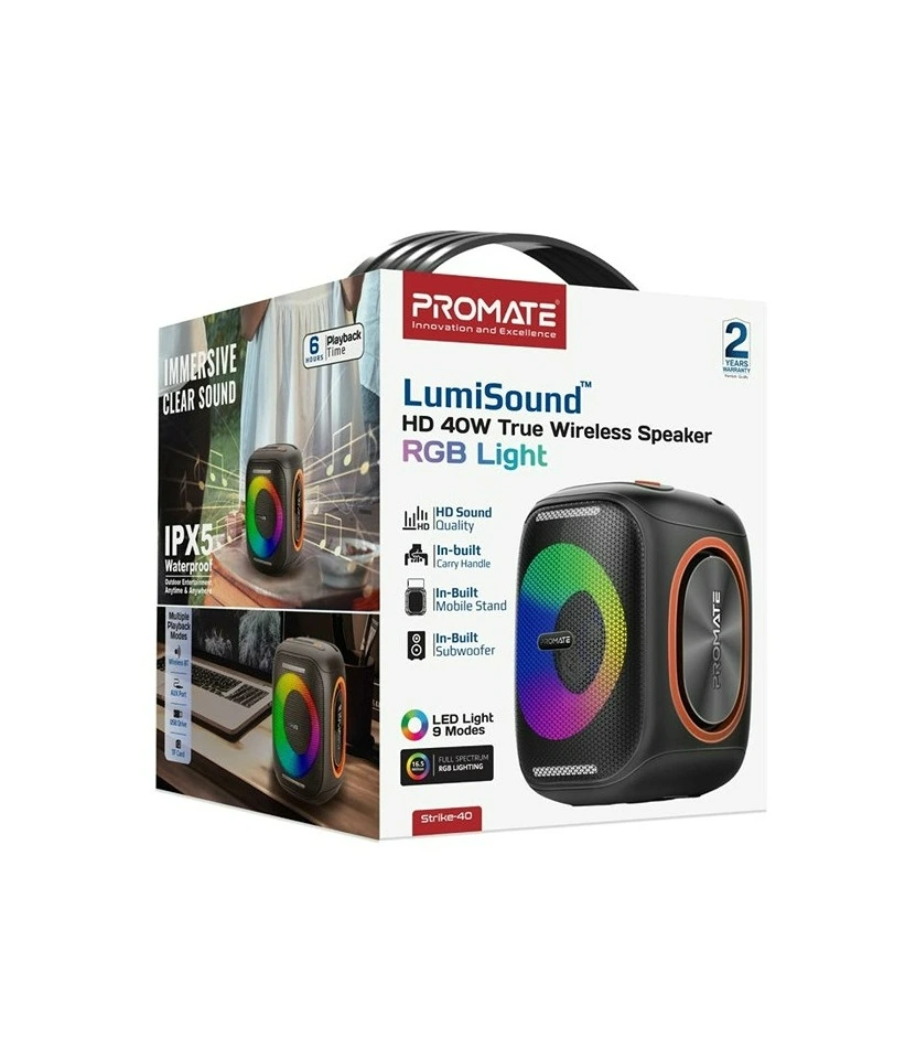 Promate Wireless Speaker Lumisound Hd 40W Rgb Light Black#Strike-40