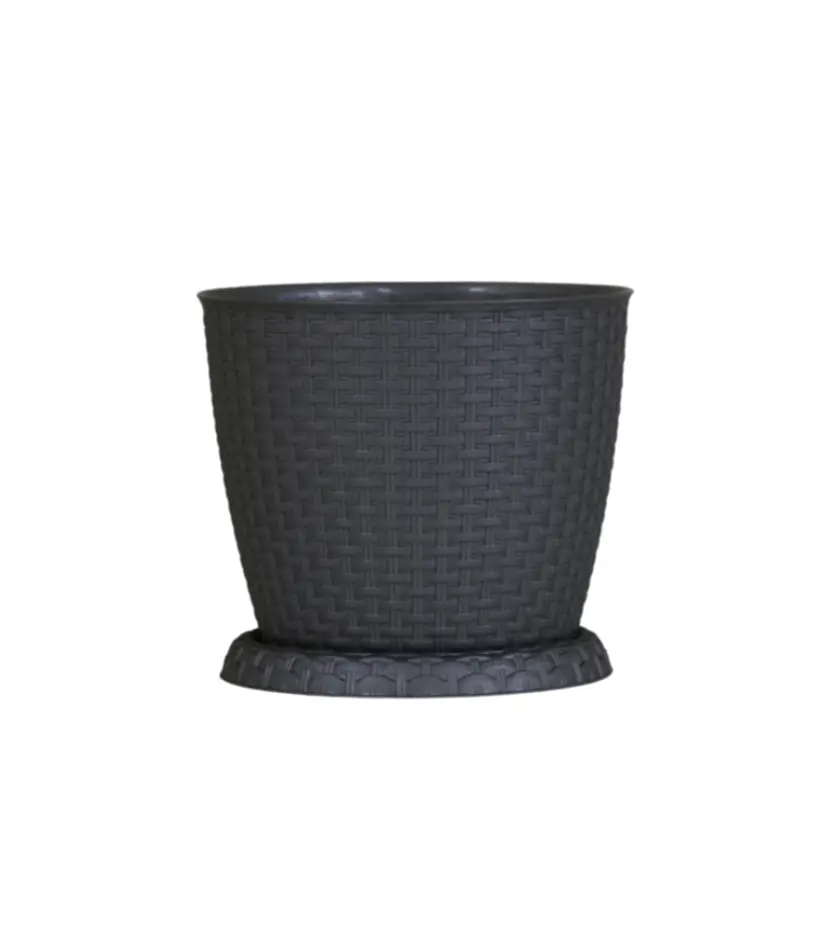 Rosa 25Cm – Rattan Gardening Round Pot Silver