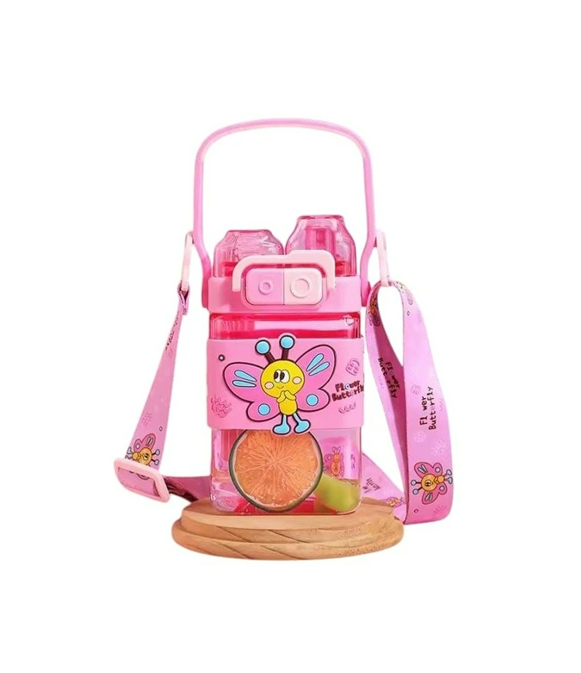 Kids Plastic Water Bottle With Straw, Daul Drinking Way, Portable Leak-Proof, Temperature Resisitant, BPA free. Capacity: 450ml